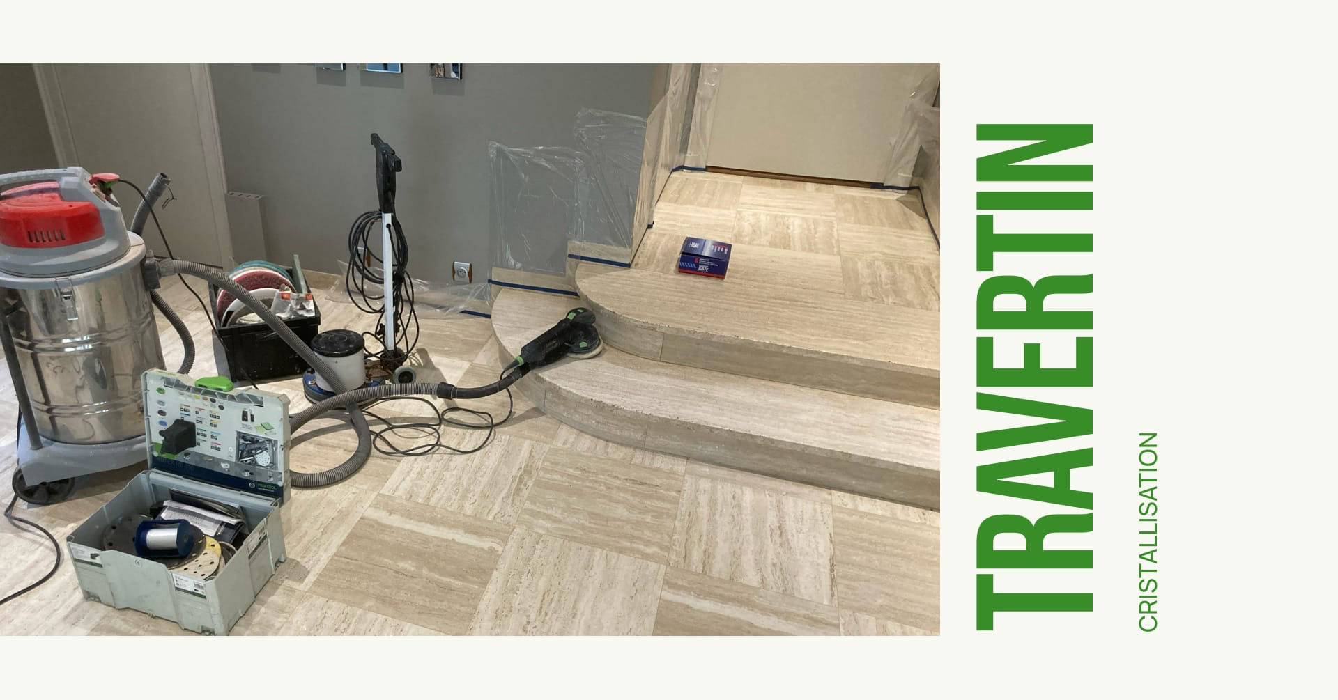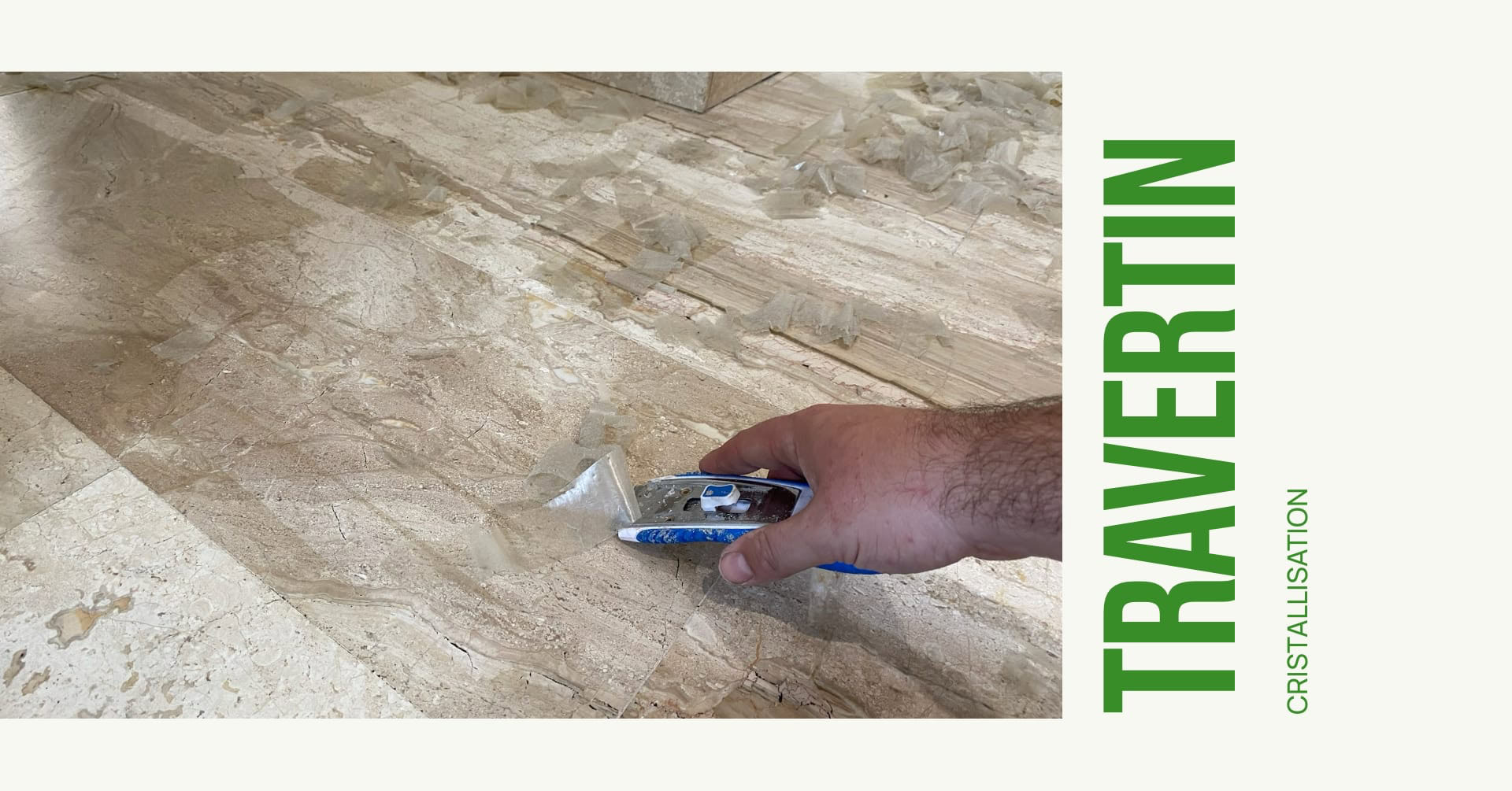 De couleur beige ou « jaune paille », le Travertin assure par ses caractéristiques une ambiance chaleureuse. Il serait dommage de le recouvrir, alors qu’il est possible de le rénover, et de lui redonner beauté et élégance.